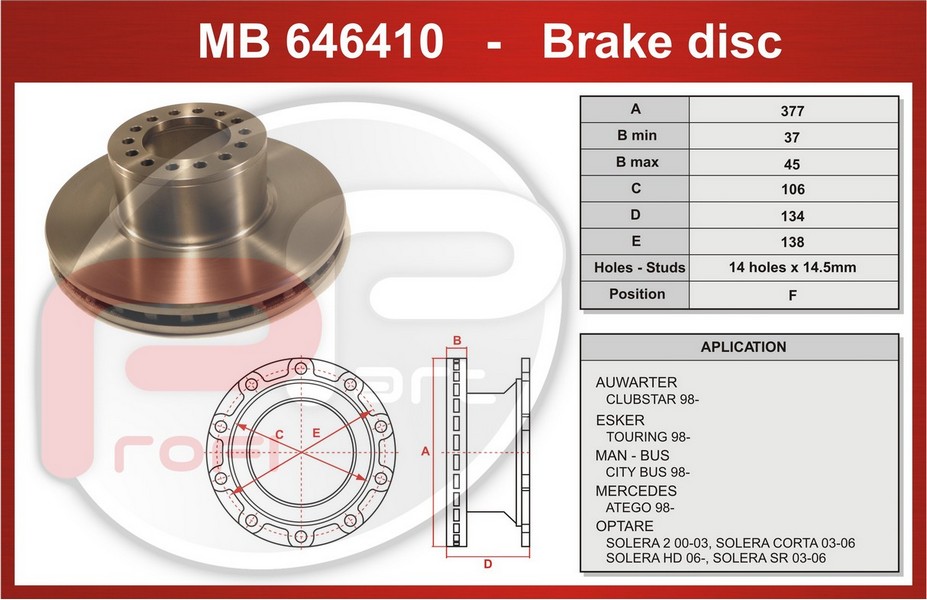 MB646410 - kotouč brzdový MERCEDES ATEGO - Profi Part, 377x106x134x138