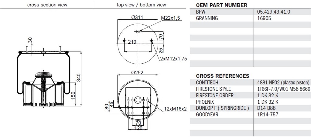 4881NP02 - měch pérování BPW 36K komplet - plastový zvon
