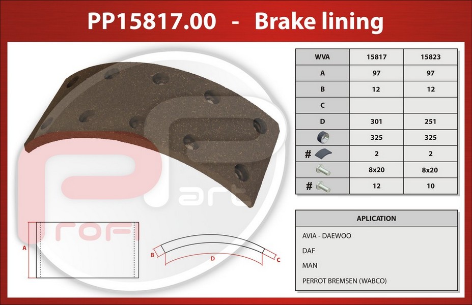 PP15817.00 - obložení brzdové DAF, AVIA - Profi Part, 325x97x12 WVA 15817/23-00