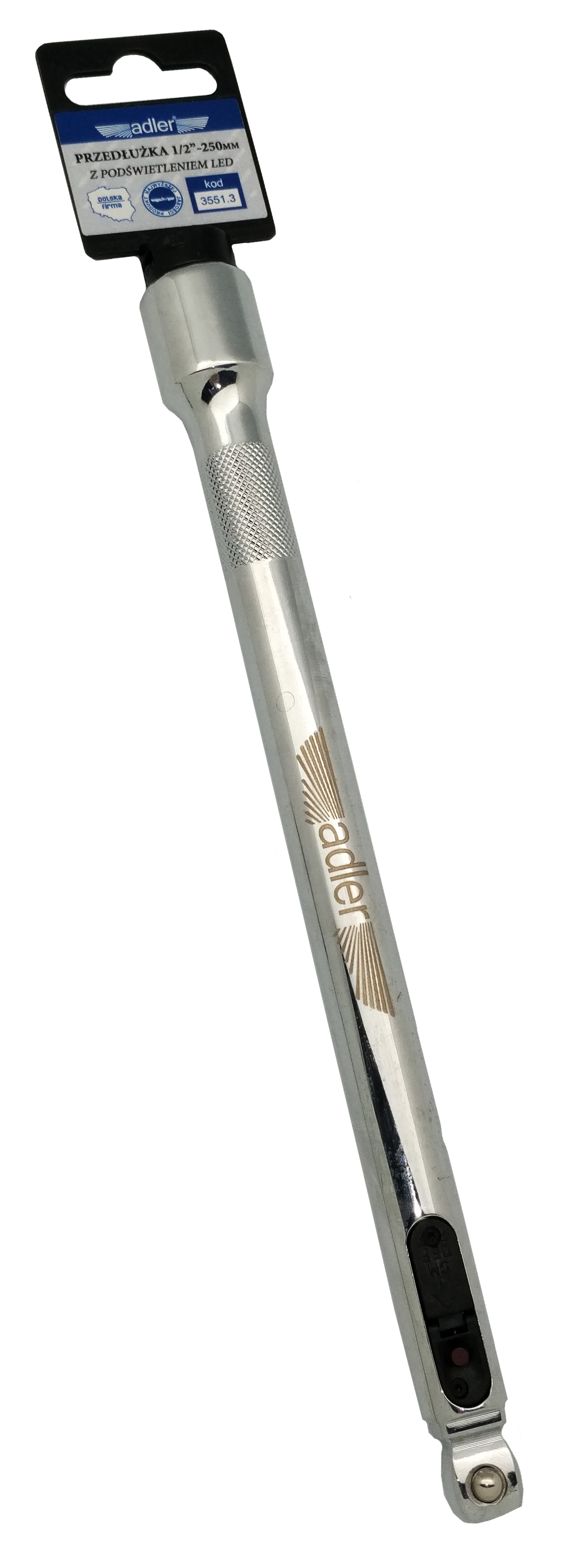 Nástavec – prodloužení, pro vodící čtyřhran 1/4", délka 25 cm, s LED osvětlením – ADLER 3551.3