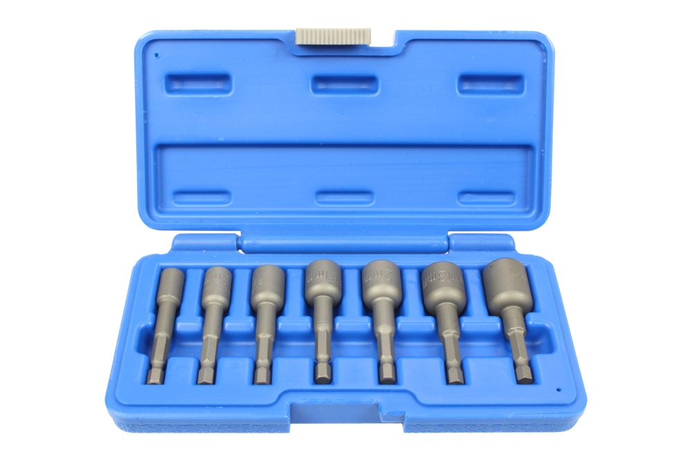 Nástrčné nadstavce sú vyrobené z ocele SNCM (nikel-chróm-molybdénová oceľ), kalené a temperované *6-hranná stopka 1/4", na upevnenie v akumulátorovom a pneumatickom náradí *Sada obsahuje nástrčné nadstavce veľkosti 6 - 8 - 10 - 11 - 12 - 13 - 14 mm