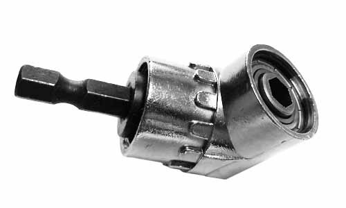 Konec nástavce se upevní do sklíčidla vrtačky, bit nerbo vrták se uchytí do hlavy. S přípravkem je díky tomu možné pracovat tzv. „za roh“.