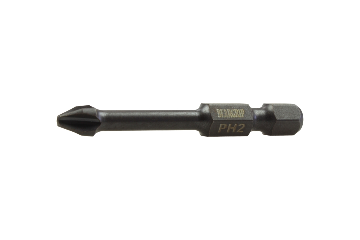 Houževnaté provedení bitů s torzním tvarem. Torzní tvar zabezpečuje předčasné opotřebení bitu. Bit je zvláště vhodný na šroubové spoje tvrdých materiálů, jako je plech, kovové díly atd. Hrot bitu je vyroben technologií rotačního kování za studena, přičemž profil bitu je tvarován údery malých kladívek rotují kolem osy bitu. Při této technologii dochází k zhutnění materiálu v místě špičky bitu a nedochází k porušení vláknité struktury kovu jako při standardní třískové výrobě na CNC obráběcích strojích, kde dochází k redukci materiálu a zeslabení špičky bitu. *speciálně zakalený dřík *vhodný pro pneumatické a elektrické nářadí *upínací část bitu je šestihran 1/4" dle normy ISO 1173 *torzní provedení *profil bitu křížový Philips - PH2 *délka 50 mm
