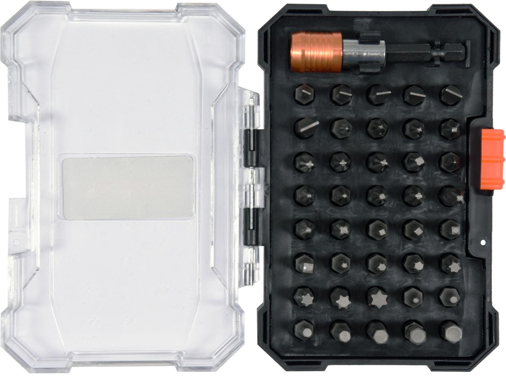 Jednotlivé bity jsou vyrobené z kvalitní CRV oceli. Sada je uložena v přehledném plastovém pouzdře.