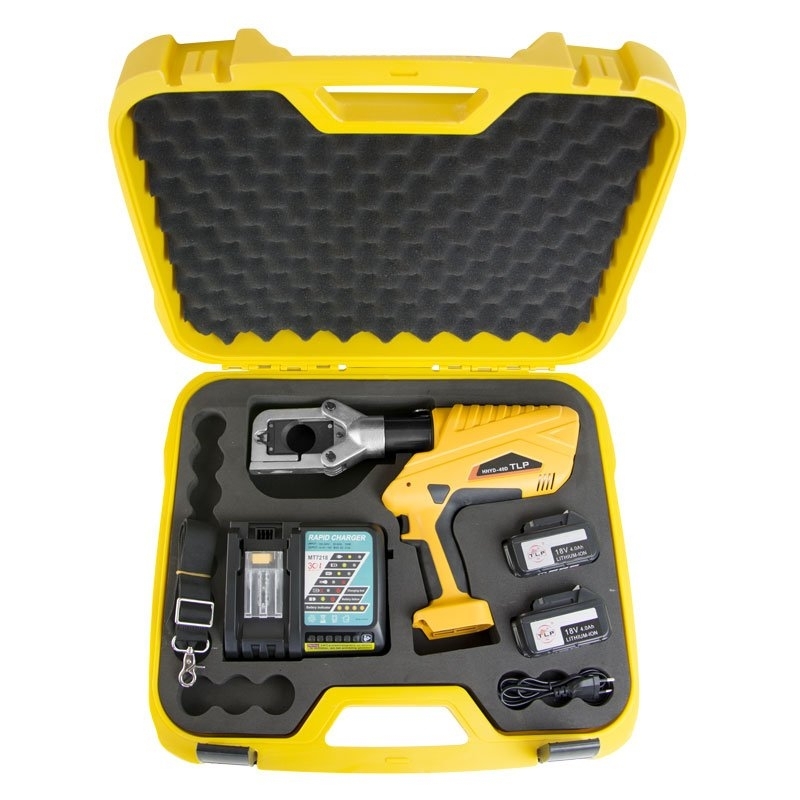 Profesionální aku hydraulické nůžky s otočnou, výklopnou hlavou na stříhání armovaných/pancéřových, Cu a Al kabelů až do O 40 mm.