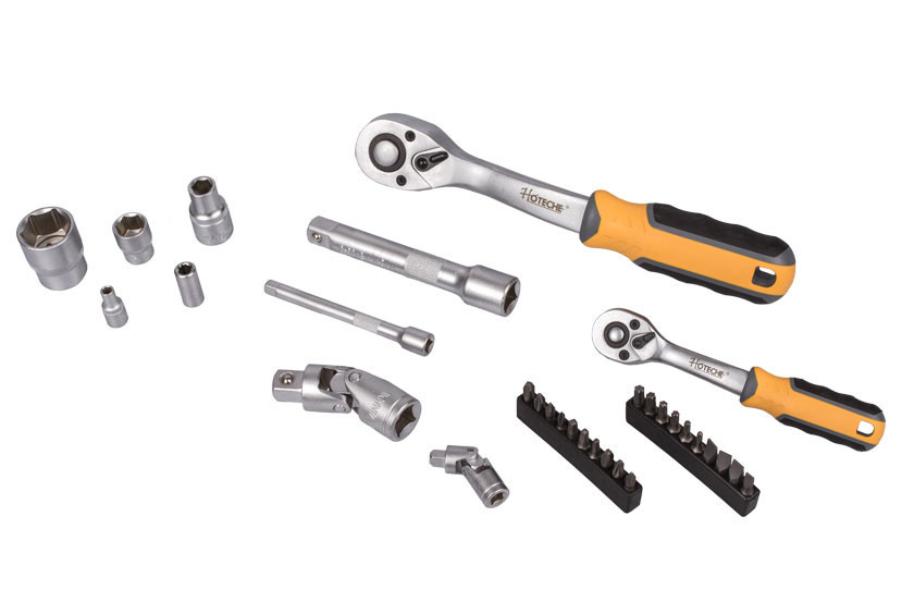 Gola sada s ráčnou 1/2" a 1/4" v praktickém plastovém držáku, díky kterému sadu snadno přenesete nebo zavěsíte v garáži, dílně, apod. Díky ergonomickému tvaru rukojeti padnou ráčny dobře do ruky a docílíte tak pevnějšího úchopu. Rukojeť je navíc vyrobena z protiskluzových materiálů (kombinace plastu a gumy).