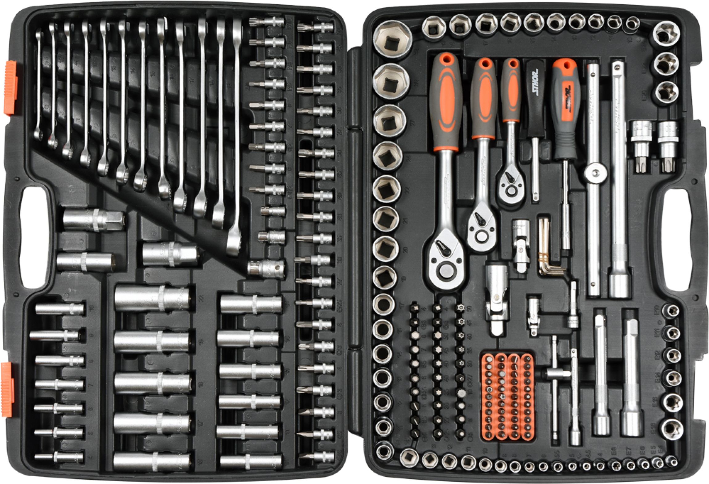 Gola sada 1/2"; 3/8" a 1/4" obsahuje 216ks: nástavce, bity a ráčny s plastovou rukojetí. Vyrobené z kvalitní CrV oceli 50BV30 s funkcí AS-DRIVE.