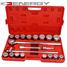SADA KLÍČŮ A NÁSTAVCŮ 3/4" 21 prvků: 1 ks řehtačka dvousměrová, 1 otáčecí kolečko posunované 495 mm, 2 prodlužky 100 mm a 200 mm 16 nástavců: 17. 19. 21. 22. 23.26. 27. 30. 24. 32. 34. 36. 41. 46. 48. 50 mm
