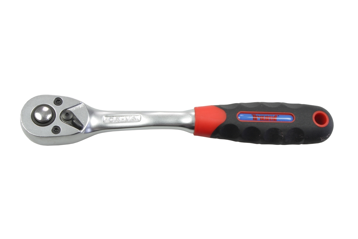 Ráčňa je vyrobená z legovanej chróm-vanádiovej ocele, vybavená protišmykovou dvojzložkovou rukoväťou pre lepšiu manipuláciu pri práci. Povrchovo upravená tvrdým chrómom pre vyššiu tvrdosť povrchu a odolnosť voči korozívnym vplyvom. Ergonomicky mierne zakrivené telo račne zabezpečuje pohodlnú prácu a znižuje riziko odretia kĺbov rúk v porovnaní so štandardnými rovnými račňami. *Prepínanie L/P pomocou prepínacej páčky *Ráčňa vybavená 72 zubami, citlivosť pohybu zubov 5° *Tlačidlo vysúvania na jednoduché uvoľnenie a výmenu nástrčných hlavíc *Štyrihranný štvorhran pre nástrčné hlavice 3/8" *Celková dĺžka 200 mm