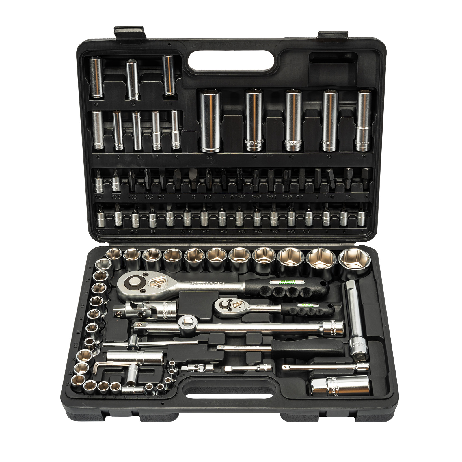 Její kompletní složení hlavic 1/4" a 1/2", bitů a nástavců z ní dělá nenahraditelného pomocníka. Všechny části jsou vyrobeny z houževnané CrV oceli, která je certifikovaná strojírenským zkušebním ústavem. Výbava: Velmi dobře kombinovaná sada v přehledném kufru. Zástrčné šroubovací hlavice PH, PL, Imbus a TRX. Klíče na svíčky 16 a 21 mm. Technologie: Ráčny s přepínací páčkou a uvolňovacím tlačítkem. Materiál: Nejpoužívanější rozměry 1/4" a 1/2" hlavic z kvalitní chrom-vanadiové oceli.