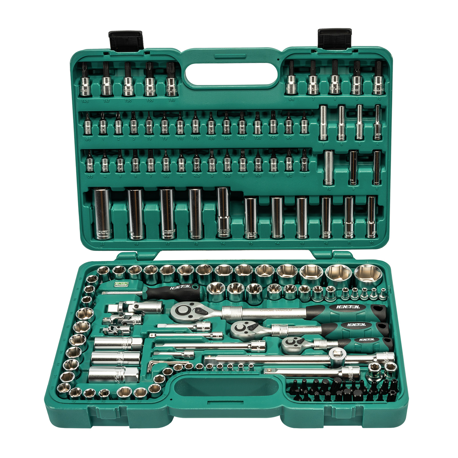 Ucelená sada 1/4”, 3/8” a 1/2” hlavic zaměřená na profesionály. Bohaté příslušenství jako bity, Imbus a TRX hlavice, prodloužení, klíče na svíčky a teleskopické ráčny ocení především autoservisy a dílny.