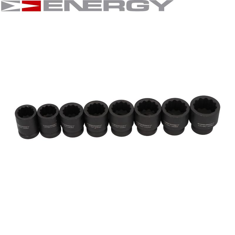 NÁSTAVCE 12-úhlové PŘÍKLEPOVÉ KOVANÉ 3/4" 8 ks Délka: 59mm. Rozměry: 26,27,29,30,32,35,36,38 mm