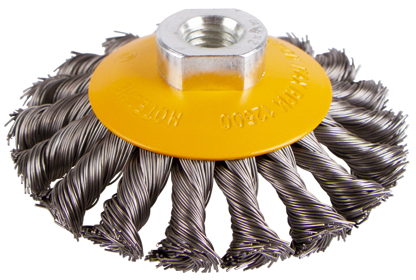 Drátěný boční kartáč o průměru 100 mm pro odstraňování rzi, barev a laků z kovových předmětů.