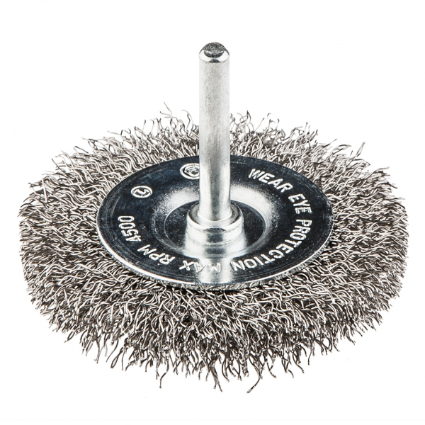 Drátěný kartáč s trnem, ? 50 mm, INOX, krimpovaný drát Drátěný kartáč GRAPHITE vyroben z drátu z nerezové oceli o tloušťce 0,5 mm. Vyztužená konstrukce těla umožňuje ?činné čištění ocelových konstrukcí z nerezové a kyselinovzdorné oceli ?chyt umožňující práci s vrtačkami.