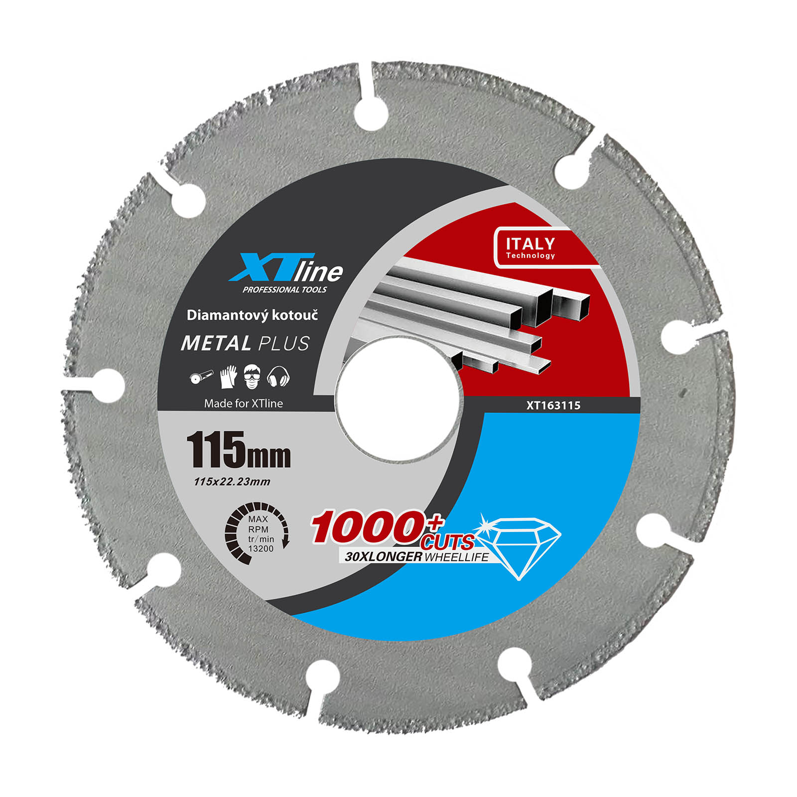 Univerzální kotouč je určený pro řezání oceli (trubky, odlitky, ocelové pláty, nerezová ocel, neželezné kovy, tvrdé kovové materiály apod.). Je určen pro práci s úhlovou bruskou.