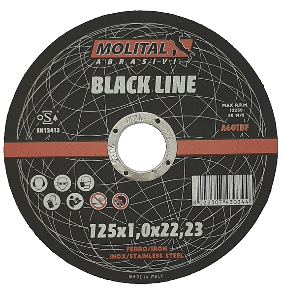 MOLITAL Abrasivi TFXBL125X10X22 - 125x1,0x22,2 A60T-BF - BLACK LINE
