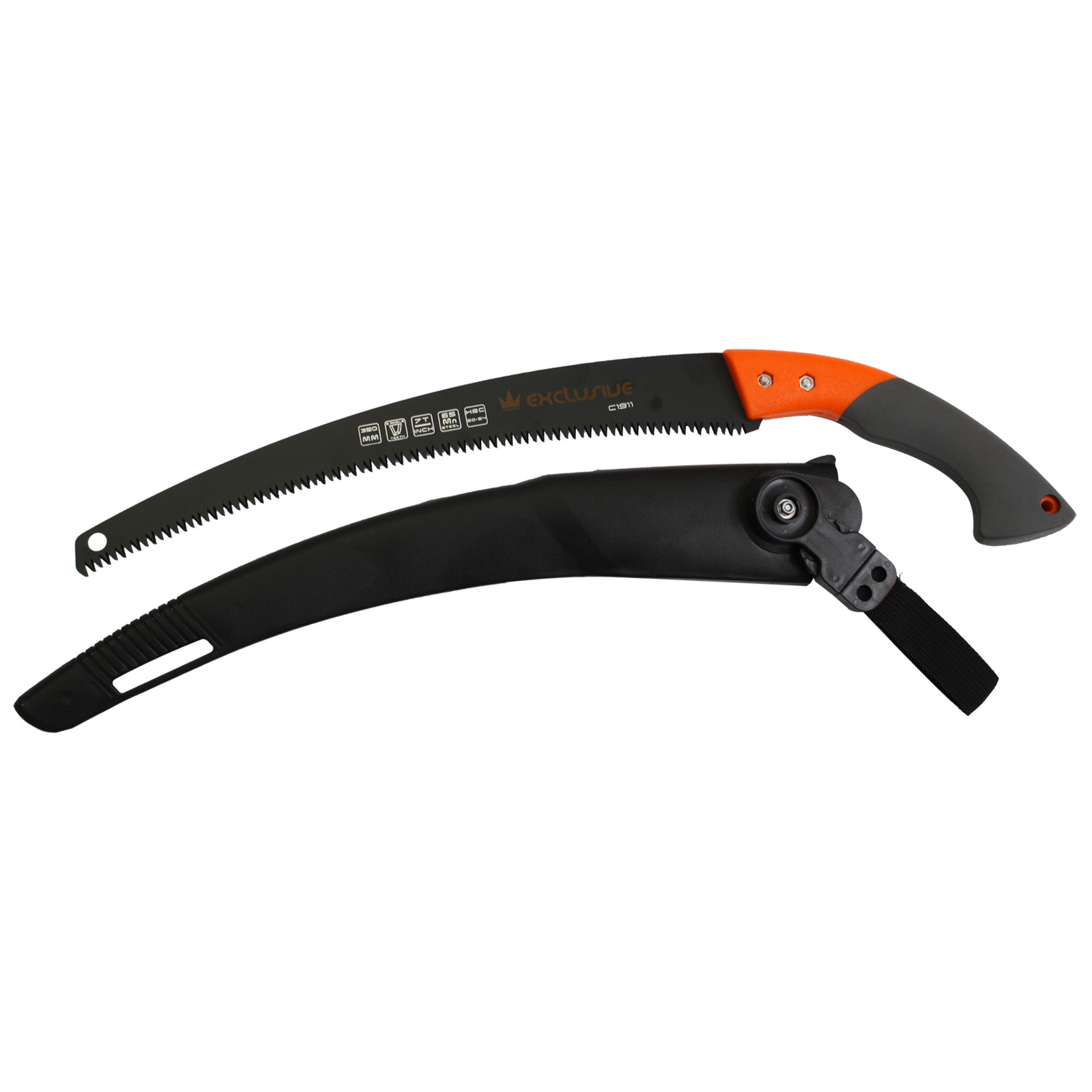 Zahradní pilka se zuby broušenými ze 3 úhlů orientovaných na obě strany. Pogumovaná rukojeť, pouzdro pro uložení.