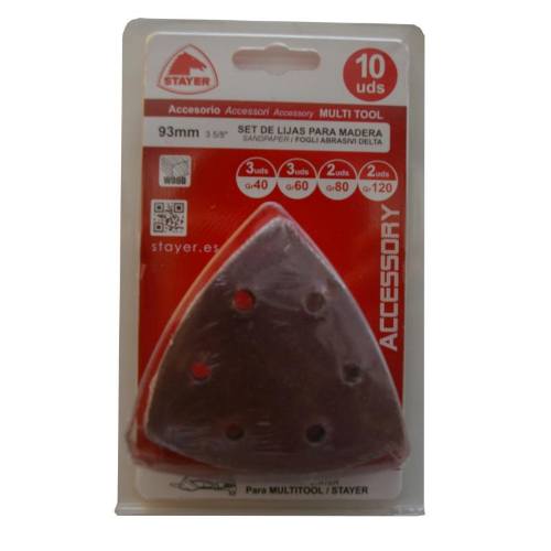 STAYER 37712556 - Sada brusných papírů na dřevo k MULTI, 93 x 93 x 93 mm, 10 ks,