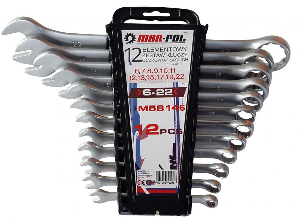 MAR-POL M58146 - Klíče očkové-otevřené 12ks 6-22mm CrV , klip