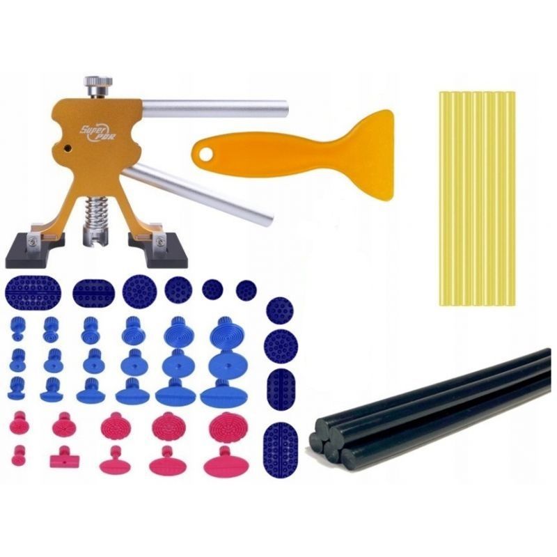 Zařízení pro odstraňování promáčknutí z karoserie automobilu od společnosti Kraft&Dele, model KD10663. Sada nezbytná v každé garáži! Nabízí možnost snadno a efektivně odstranit promáčknutí. Účinek opravy je okamžitý. Produkt nezanechává žádné stopy.