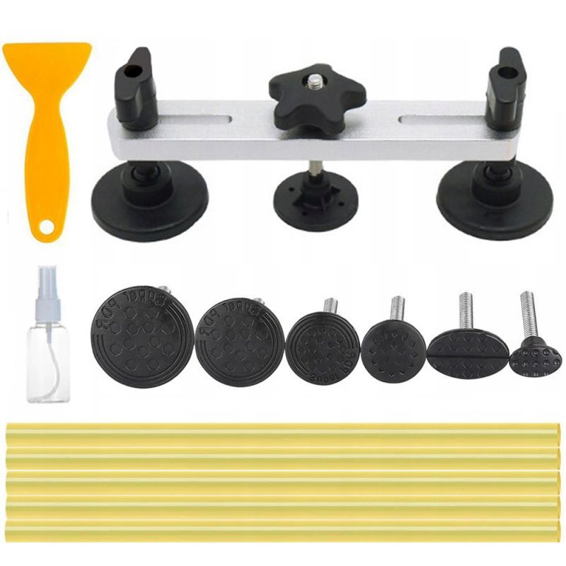 Zařízení je vyrobeno z vysoce kvalitních materiálů s důrazem na detail a preciznost zpracování, které zaručují dlouhou a efektivní práci nástroje. Díky měkkým, ale odolným gumovým stojanům a adaptérům aplikace nepoškodí lak. Sada obsahuje stěrku na odstranění zbytků horkého lepidla, která je navržena tak, aby nepoškodila lak.