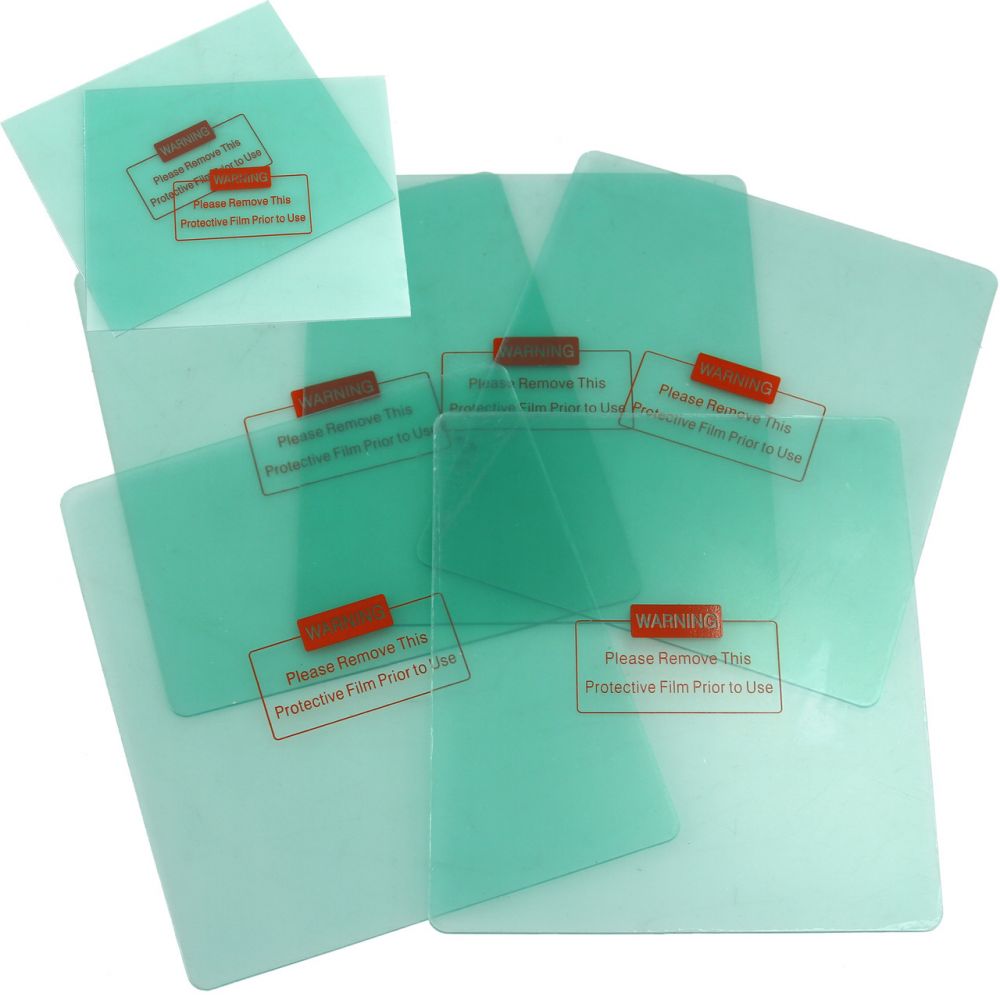 Sada 7ks ochranných skel pro svářecí kuklu v ochranné fólii ve dvou rozměrech.