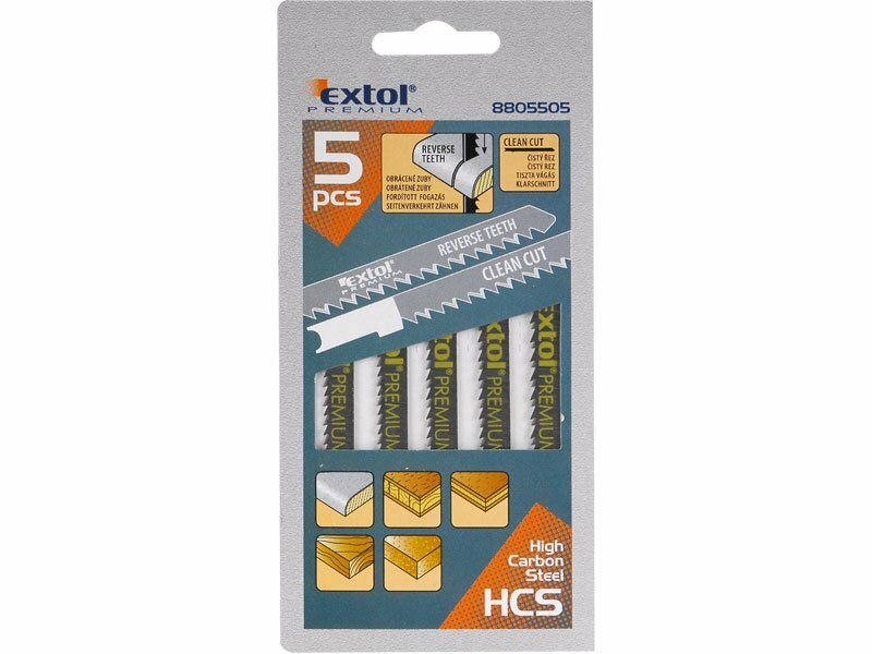 Extol EX8805505 - Plátky do přímočaré pily 5ks, 75x2,5mm, úchyt UNIVERSAL, HCS EXTOL-PREMIUM