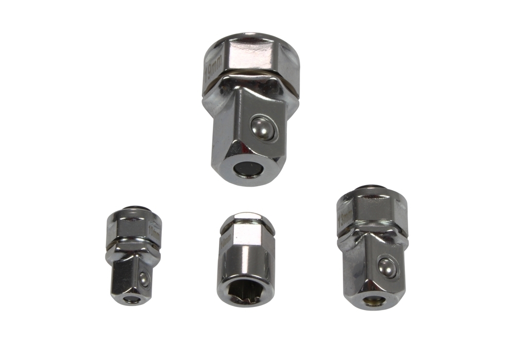 Adaptéry pro ráčnové klíče jsou vyrobeny z Chrom - Vanadiové oceli a povrchově chromovány pro větší pevnost a odolnost vůči korozivním vlivům. Použitím adaptéru ve spojení s ráčnovým klíčem získáte extra nízkou ráčnu pro práci ve stísněných prostorách. *sada obsahuje: *adaptér na hlavice 1/4" pro klíč 10 mm *adaptér na hlavice 3/8" pro klíč 13 mm *adaptér na hlavice 1/2" pro klíč 19 mm *adaptér na bity 1/4" pro klíč 10 mm