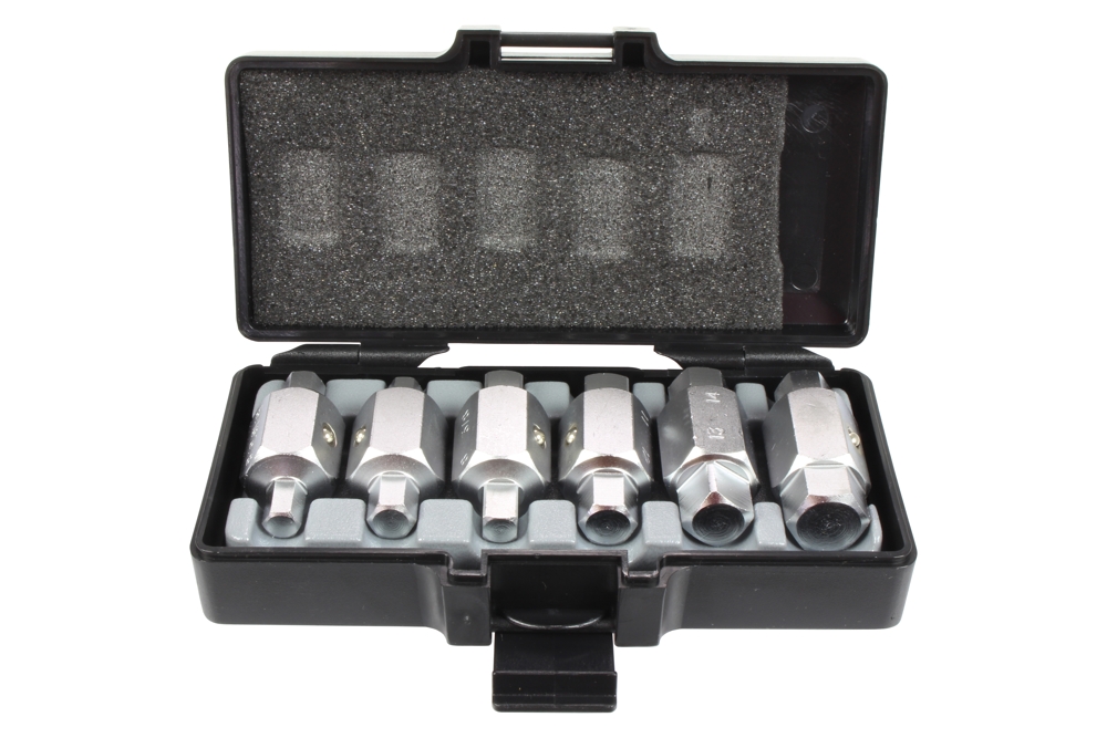 oboustranné zástrčné klíče s pojistnou kuličkou pro 21 mm hlavici *délka klíče 52 mm *rozměry 6-ti hranu 5/16, 3/8, 1/2, 8 mm, 10 mm, 12 mm, 14 mm, 17 mm *rozměry čtyřhranu 3/8, 8 mm, 11 mm, 13 mm *povrchově upraveno galvanizací *uloženo v plastové/plechové kazetě