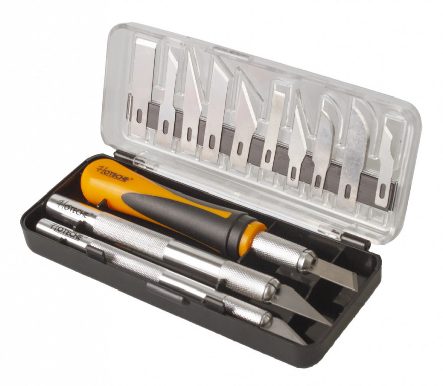Sada skalpelů od značky Hoteche by neměla chybět v žádné garáži nebo dílně. Tato sada najde uplatnění například v modelářství, nebo řezbářství.