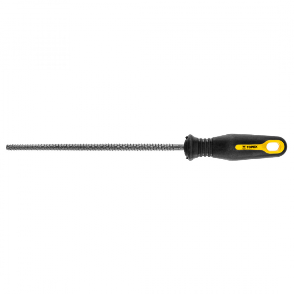 Pilník na dřevo kulatý, 200 mm, ocel T12, rukojeť ze dvou materiálů Pilník na dřevo TOPEX s délkou 200 mm. Určený na broušení dřeva. Vyrobený z vysoce kvalitní oceli T12. Ergonomicky tvarovaná rukojeť potažena protiskluzovým materiálem poskytuje pohodlí a bezpečnost při práci. Značka TOPEX je určena pro domácí kutily.