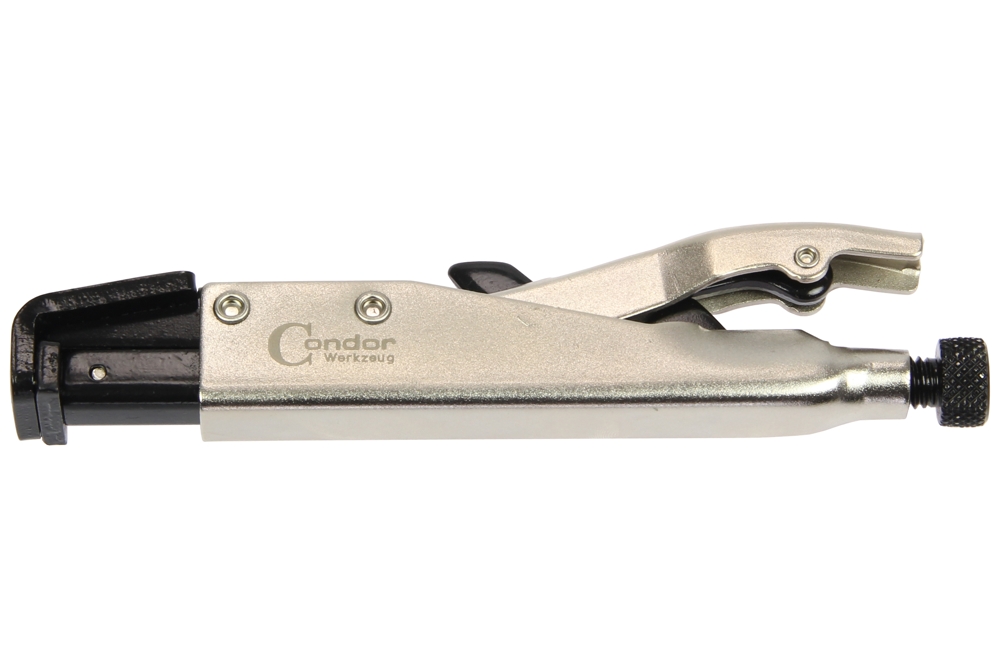 Čelisti kleští jsou vyrobeny kováním z jakostní Chrom - Molybdenové oceli a zakaleny v oleji, rukojeti jsou vyrobeny kováním z válcované oceli a zakaleny v oleji. Spolehlivě uchopí plochý materiál, plechy atd. Kleště naleznou uplatnění především v autoopravárenství a kovovýrobě, ale i v řemeslných a hobby dílnách. *vhodné na bodové svařování, falcování plechů dveří, podběhů, atd. *vysoký upínací tlak díky převodu lomené páky *samosvorné *snadná obsluha jednou rukou *stavitelné pomoci nastavovacího šroubu *uvolňovací páka pro snadné uvolnění upínacího tlaku a rozevření kleští *typ "L" čelist *povrch kleští je opatřen chromem *rozevření čelistí 0 -15 mm *délka 195 mm