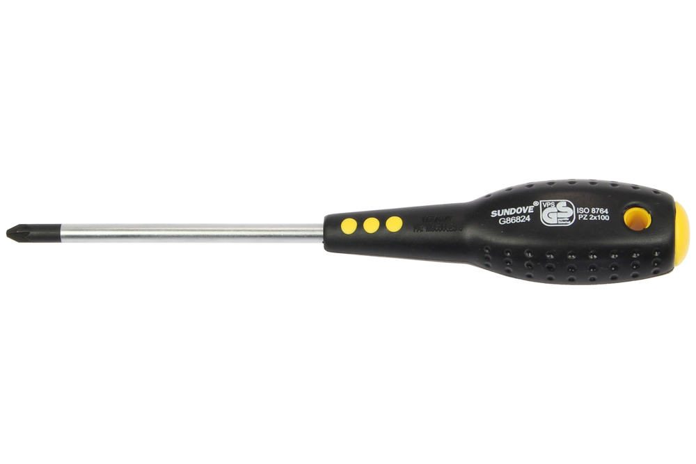 Dřík šroubováku je vyroben z kvalitní legované Chrom – Vanadiové oceli. Ergonomická rukojeť je dvoukomponentní a je vstřikována přímo na dřík pro vysokou odolnost a pevnost , měkčený povrch v protiskluzovém provedení pro pohodlné uchopení. *dřík z chrom-vanadiové oceli, chromovaný *hrot kalený, černěný *rukojeť s otvorem pro zavěšení *tvar hrotu křížový Pozidriv PZ *velikost hrotu PZ2 *délka dříku 100 mm