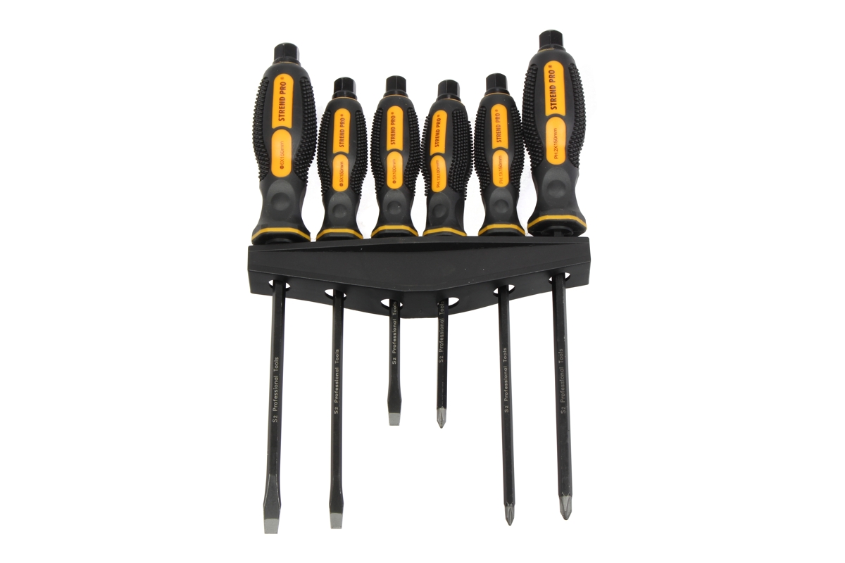 Stopka skrutkovača je vyrobená z chróm-vanádiovej ocele. Dvojzložková rukoväť v ergonomickom dizajne s protišmykovými výstupkami pre lepší prenos sily a pohodlný úchop pri práci. *plochý skrutkovač PL5 x 100 mm - PL5 x 150 mm - PL6 x 150 mm *krížový skrutkovač PH1 x 100 mm - PH1 x 150 mm - PH2 x 100 mm