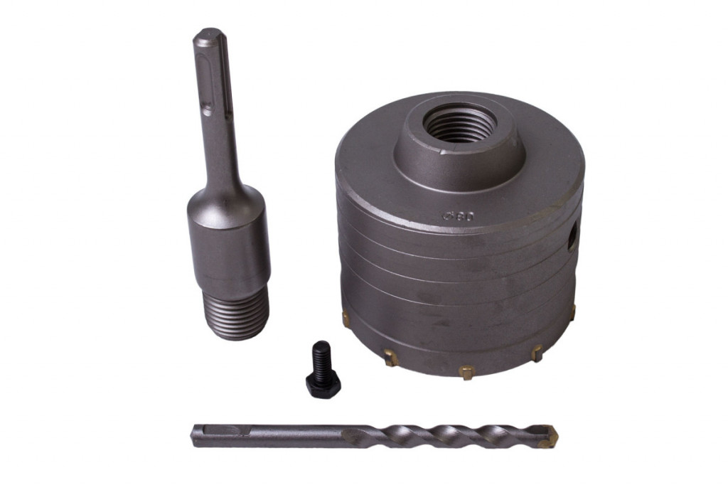 Korunkový vrták značky Hoteche pro bezpříklepové vrtání do zdiva a kamene a jiných stavebních materiálů. Díky bezpříklepovému vrtání je otvor čirý a bez nebezpečí prasknutí povrchu.