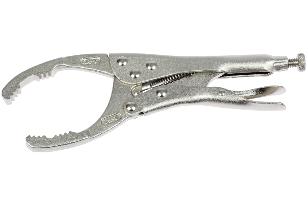 Čeľuste klieští sú vyrobené z chróm-vanádiovej ocele a kalené v oleji, rukoväte sú vyrobené z valcovanej ocele a kalené v oleji. Spoľahlivo uchopí olejové filtre a materiál s kruhovým profilom. Kliešte nachádzajú uplatnenie predovšetkým v autoopravárenskom priemysle, ale aj v remeselníckych a hobby dielňach. *vysoký upínací tlak vďaka lomenej pákovej prevodovke *samočinná aretácia *jednoduché ovládanie jednou rukou *nastavenie pomocou nastavovacej skrutky *uvoľňovacia páka na jednoduché uvoľnenie upínacieho tlaku a otvorenie klieští *uchopí kruhové profily v rozsahu 53 - 115 mm *dĺžka 230 mm