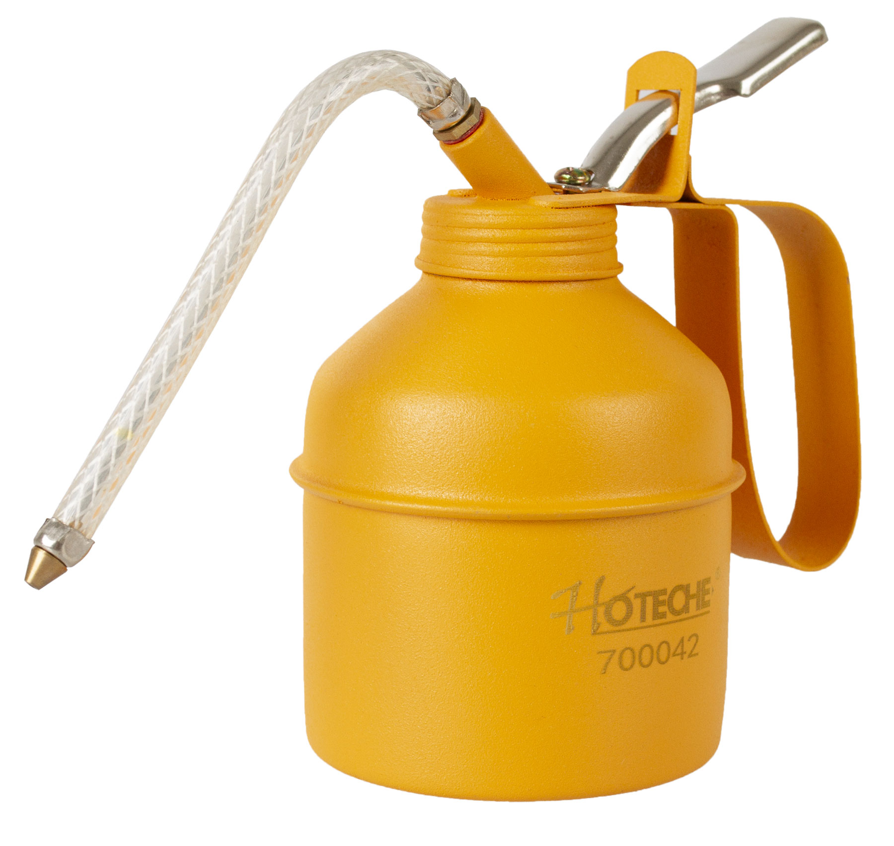 Kovová olejnička s flexibilním aplikátorem.