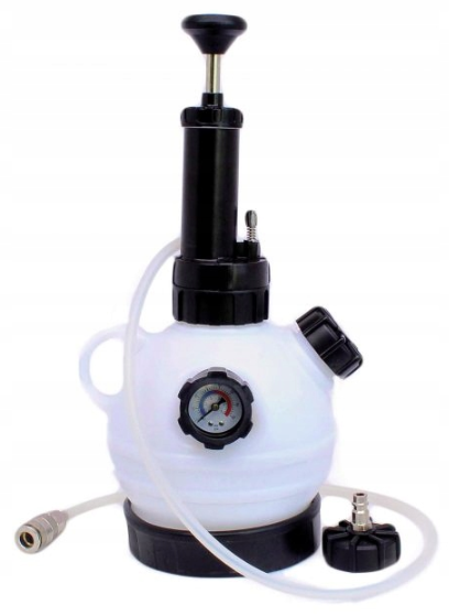 V nádobě se pomocí ruční pumpičky vytvoří přetlak, který kapalinu následně žene do systému brzd či spojky – není tedy nutné ji neustále pumpovat manuálně a práci zvládne jedna osoba. Uprostřed nádobky je umístěn tlakoměr – manometr s rozsahem 0 až 5 bar a barevně vyznačenými poli (modrá a červená). Obsluhující mechanik má díky tomu neustále kontrolu nad tlakem v systému.