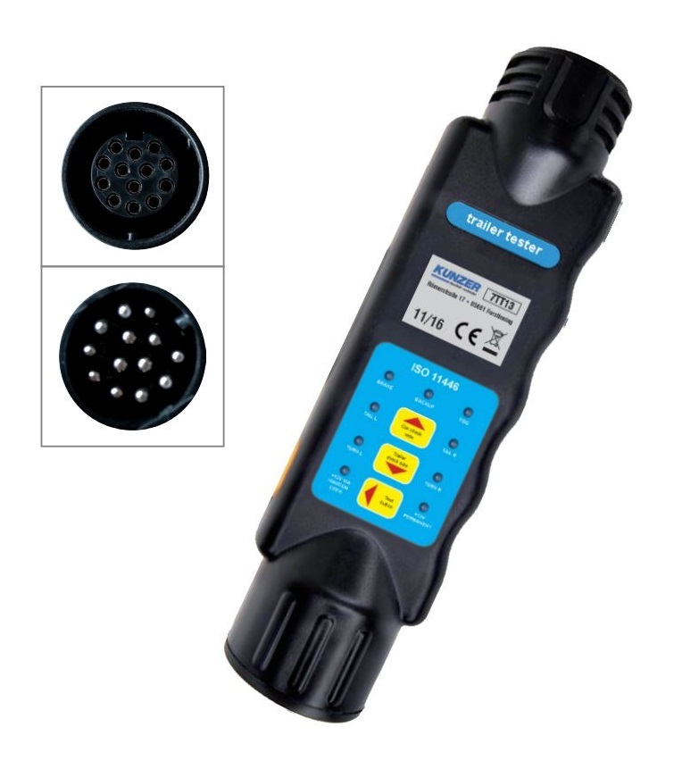 Ručný tester - tester pre 12-voltové elektrické zásuvky a zástrčky pre prívesy s 13 pólmi, s LED displejom a batériovým napájaním - Kunzer 7TT13