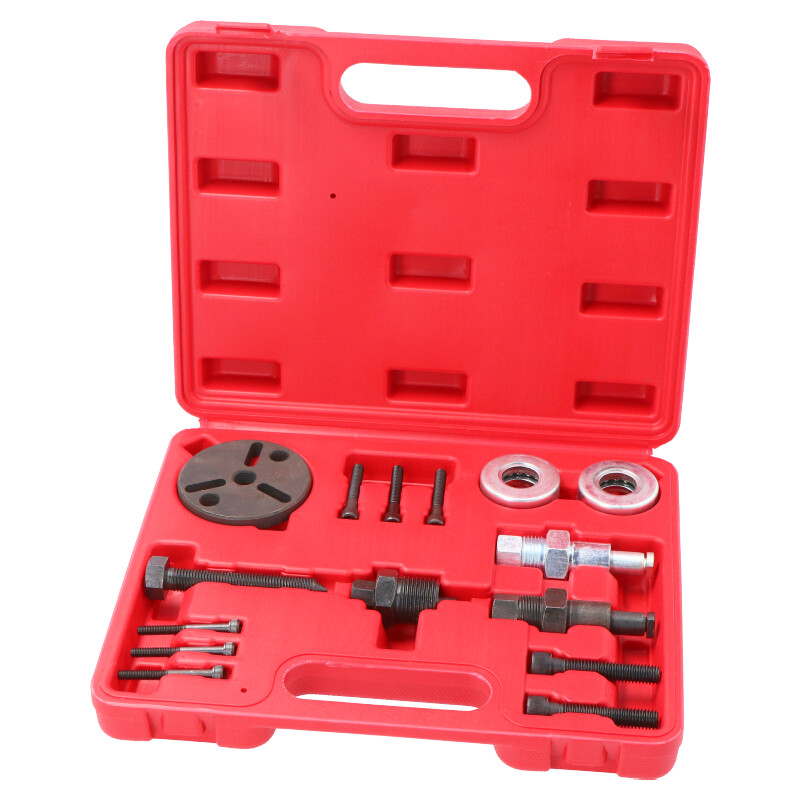 Stahovák spojky kompresoru klimatizace Možnost montáže dvou nebo třech šroubů zabezpečuje obsluhu většiny spojek. Souprava slouží k demontáži spojky v následujících kompresorech: - Fs6, C171, 6P a 148, GM R4 i A6, Hr6, DA-6 i V5 - Sanden SD 505, 507, 510, 575, 708, 709 a jiných