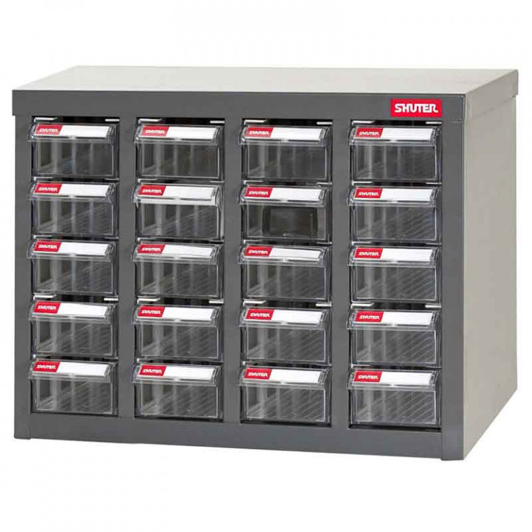 Shuter ST1-420 - Galvanizovaný kovový organizér pro dílenský materiál a díly s 20 zásuvkami