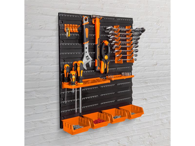 Organizujte své nářadí dle vašich potřeb. Jednoduše sestavitelný plastový, nástěnný organizér, který je výbornou volbou pro uložení většiny nářadí. Dvě tabule můžete podle potřeby umístit vedle sebe nebo pod sebe. Zkoncujte s neustálým hledáním v zásuvkách mezi nářadím. vašeho nářadí přehledná. Zajistí kompaktní ale optimální uspořádání.