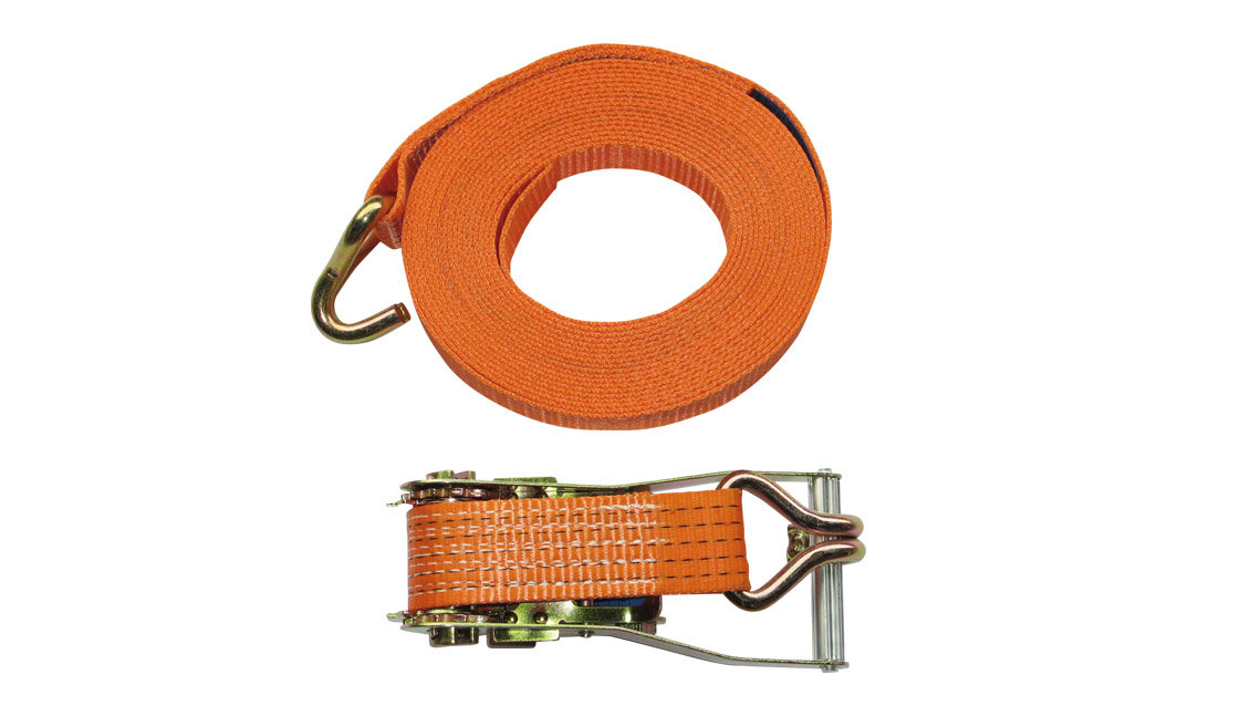 Upínací pás s račňou "kurtna" a hákmi na oboch koncoch na upevnenie s celkovou nosnosťou 2 tony a dĺžkou 4 m. Pevnosť pásu je 2000 kg v ťahu a 1000 kg v ťahu. Sila západky je 220 daN. Šírka ponúkaného závesu je 35 mm.