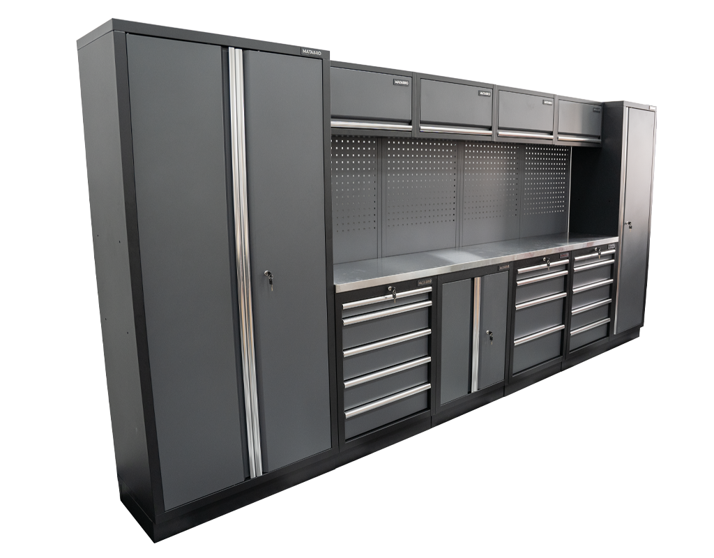 Matabro SET-CA01042 - AKČNÍ SET Sestava 10 ks dílenského nábytku s nerezovou pracovní deskou MB-TGW53S