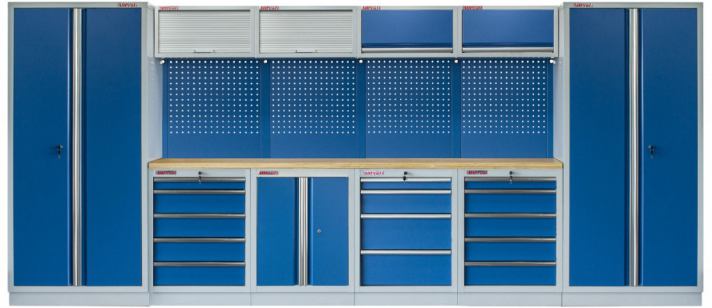 Sestava nábytku v sobě skrývá dostatečné množství úložného prostoru pro vaše nářadí, autotechniku i dílenské vybavení. V kombinaci s bytelnou pracovní deskou získáte multifunkční stěnu, se kterou vám půjde práce od ruky ve všech směrech.