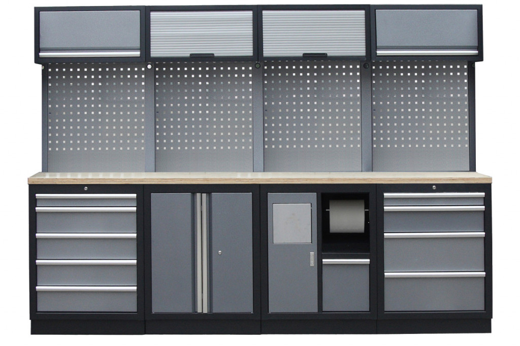 Sestava nábytku v sobě skrývá dostatečné množství úložného prostoru pro vaše nářadí, autotechniku i dílenské vybavení. V kombinaci s bytelnou pracovní deskou získáte multifunkční stěnu, se kterou vám půjde práce od ruky ve všech směrech.