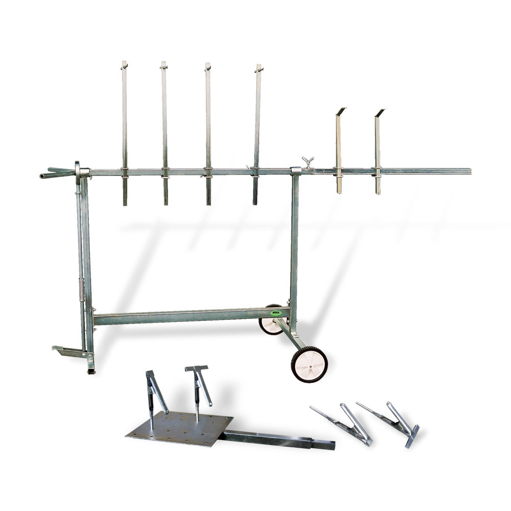 Pozinkovaný stojan se stabilní konstrukcí a pohodlným otočným mechanismem aretovaným pedálem umožňuje položení opracovávaných nebo lakovaných prvků do libovolné pozice. Velká kola umožňují stojan snadno přemisťovat. Lze připojit prvek prodlužující pracovní pole na 2,20 m.
