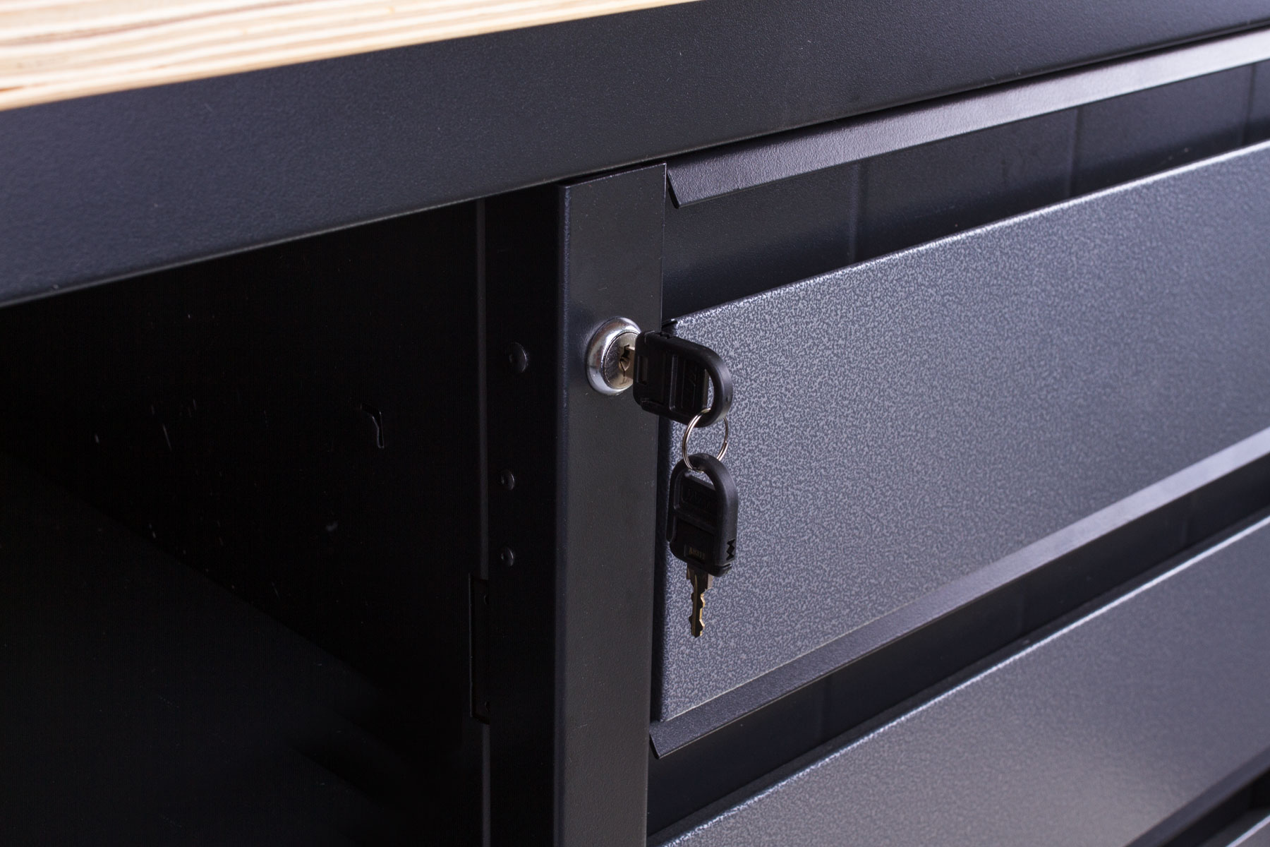 Díky uzamykatelným zásuvkám a skříňkám nemusíte mít strach před nezvanými hosty a uložené nářadí zůstane v bezpečí.