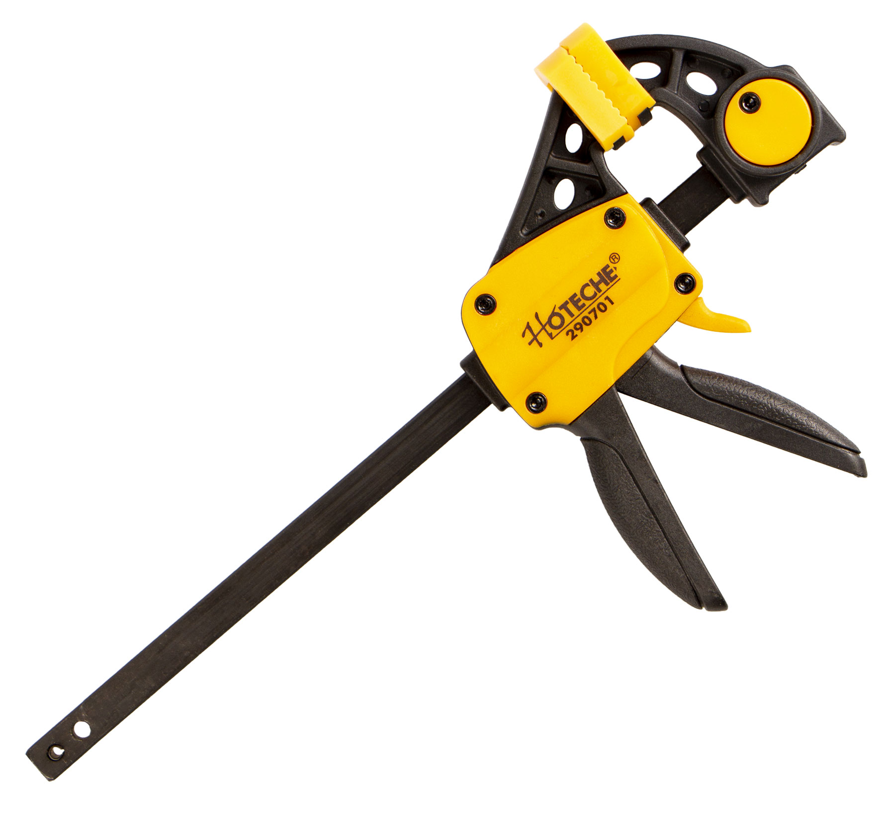 Rychloupínací truhlářská svěrka od značky Hoteche vhodná k upevnění, sevření různých materiálů.
