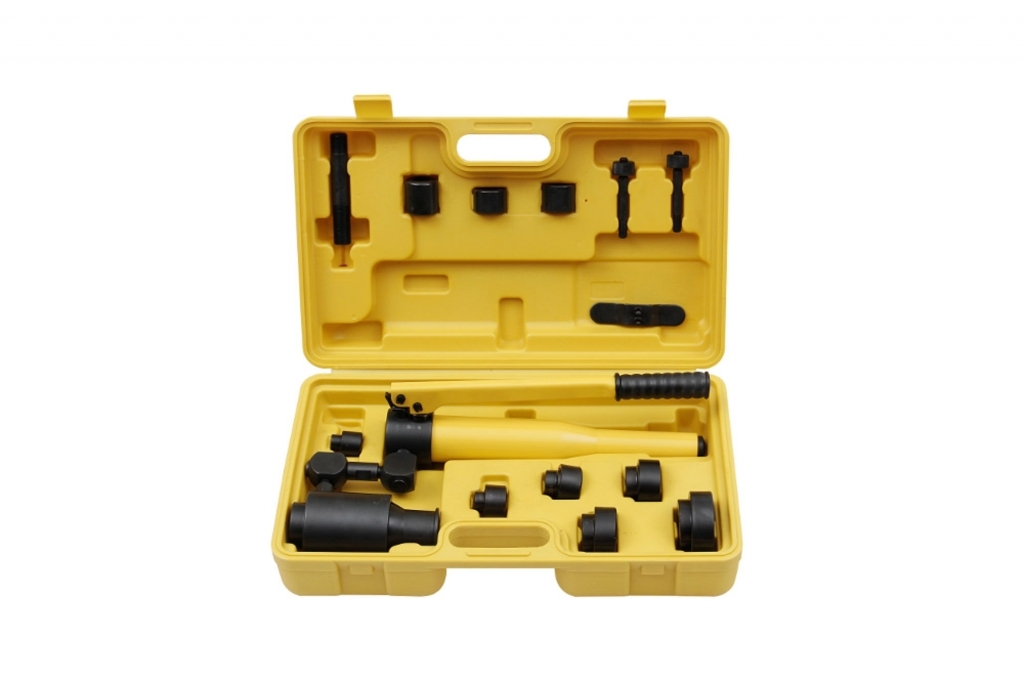 - súprava v plastovom kufríku obsahuje hydraulický ručný pákový dierovač a príslušné dierovače/perforátory a adaptéry